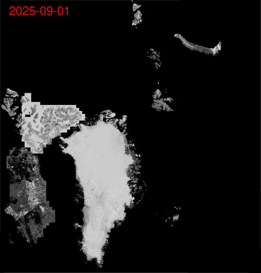 All Sentinel-3 images on this web page have been derived with the SICE algorithm developed by The Geological Survey of Denmark and Greenland (GEUS). See more details here: https://dataverse.geus.dk/dataset.xhtml?persistentId=doi:10.22008/FK2/7DCJ0U